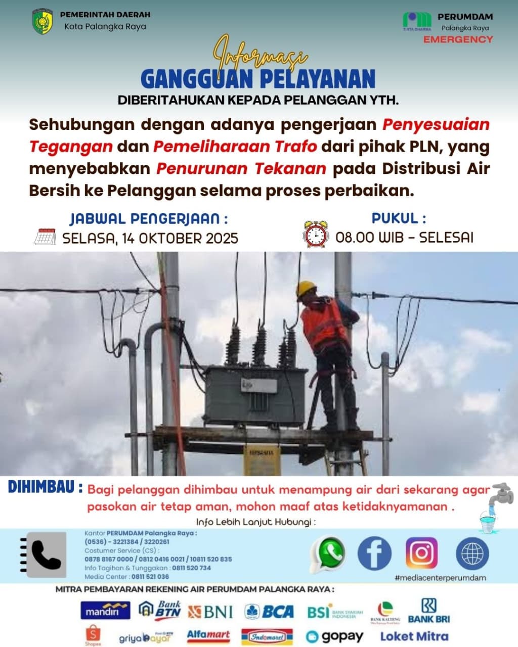 Sehubungan dengan adanya pengerjaan Penyesuaian Tegangan dan Pemeliharaan Trafo dari Pihak PLN, yang menyebabkan terjadinya Penurunan Tegangan pada Distribusi Air Bersih ke Pelanggan selama proses perbaikan.