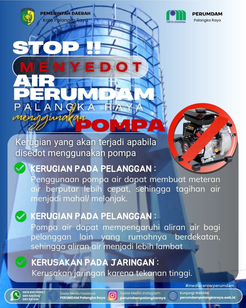 STOP MENYEDOT AIR PERUMDAM PALANGKA RAYA MENGGUNAKAN POMPA.